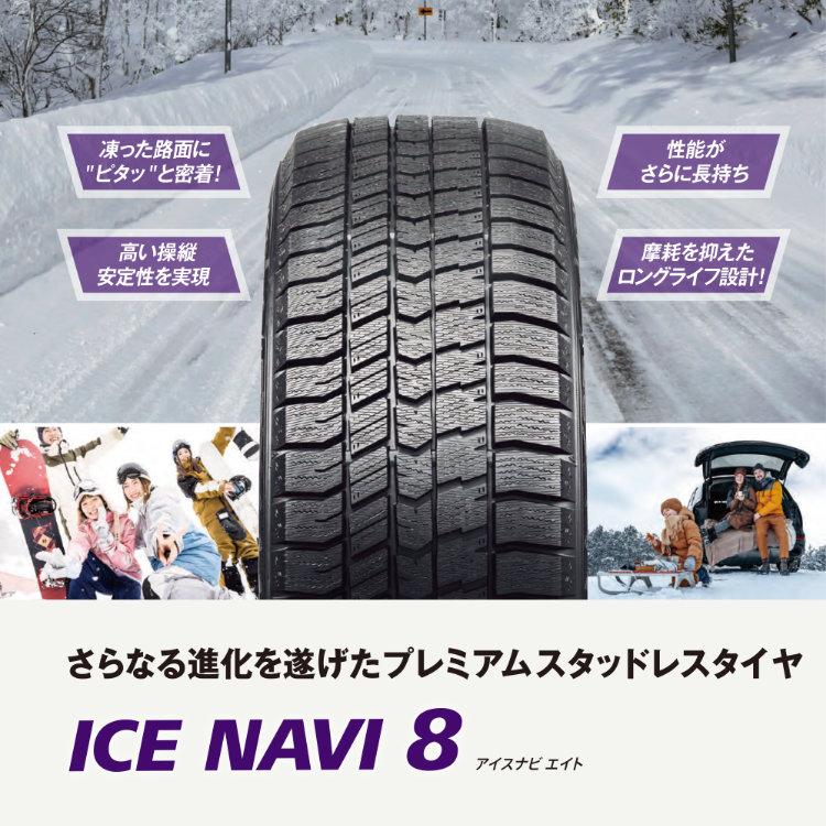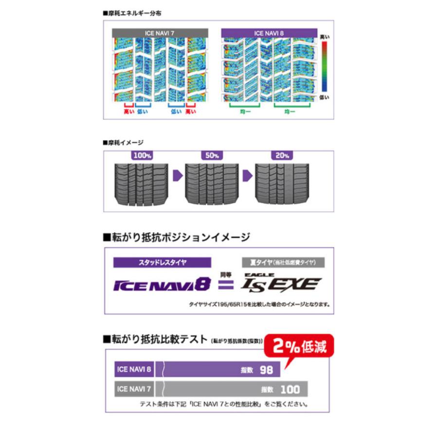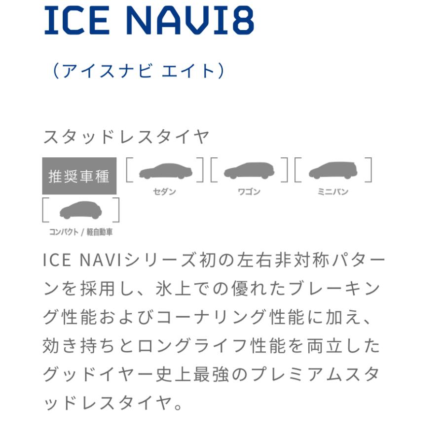 グッドイヤーのスタッドレスタイヤ【アイスナビ8】は、氷上性能の大幅な向上と、相反するロングライフ性能の両立を実現したプレミアムスタッドレスタイヤです。