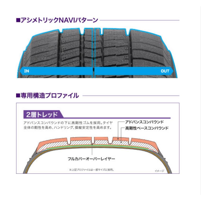 左右非対称パターンを採用することでコーナリング性能など雪道性能を強化していますね。
