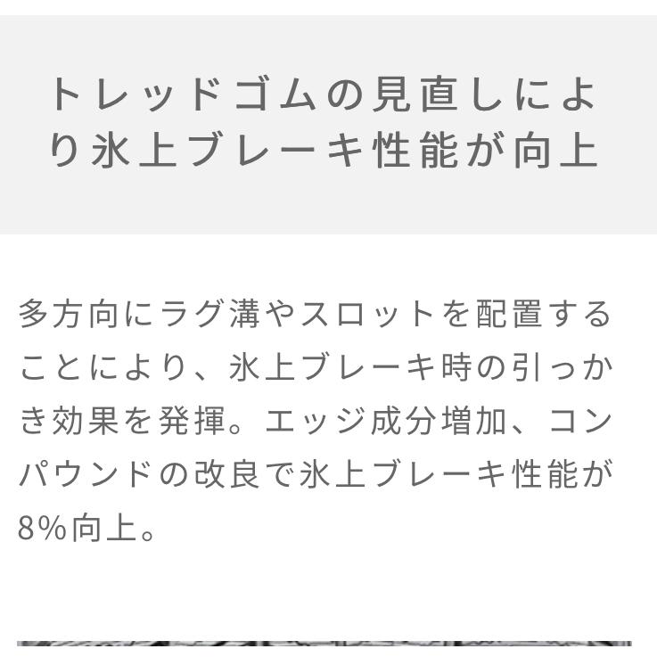 エッジ成分増加、コンパウンドの改良で氷上ブレーキ性能が8%向上していますよ。